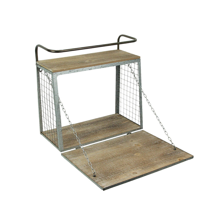 Rustic Wood & Metal Wall Mounted Open Shelf with DIY Customizable Blank Front Panel – Paintable Drop-Down Workspace, Bar, Potting Bench, or Coffee Station – 17.25” Versatile Storage Organizer