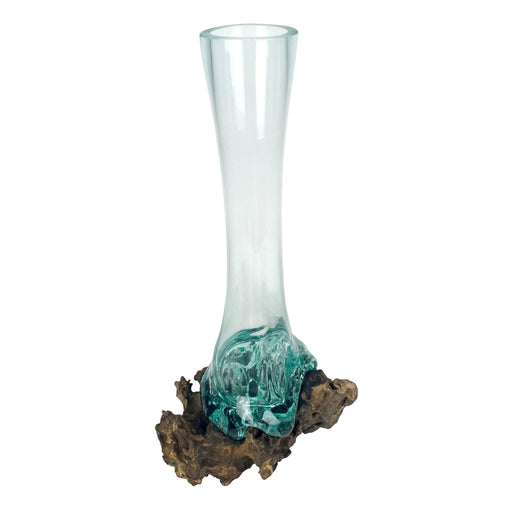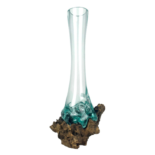 Clear Molten Glass On Teak Driftwood Base Decorative Bowl Vase Terrarium Planter