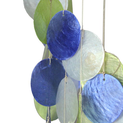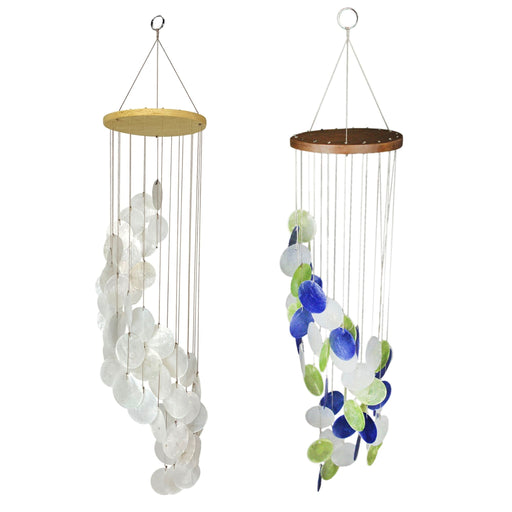 Set of 2 Spiral Capiz Shell Wind Chimes – Coastal White and Blue Green Outdoor Hanging Décor, 29-Inch Elegant Shell Chimes, Beach Patio Garden Porch Accent, Relaxing Melodic Sound, Easy to Hang