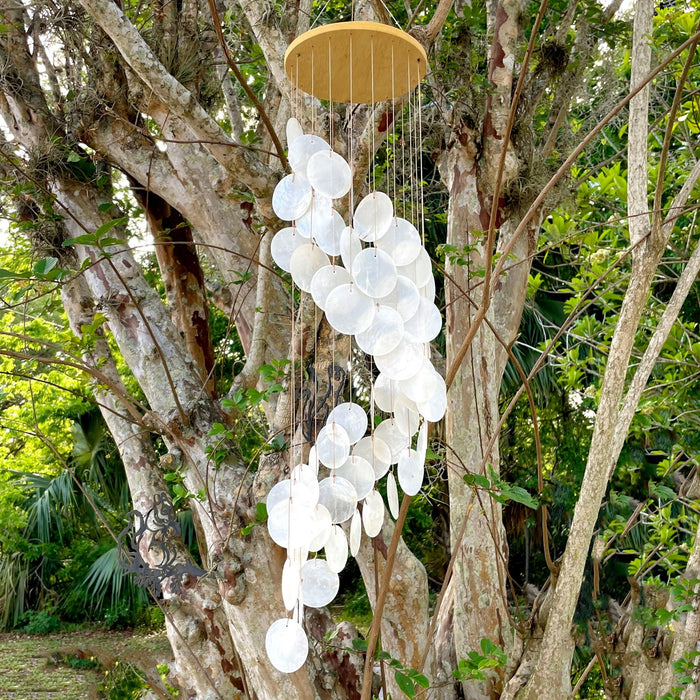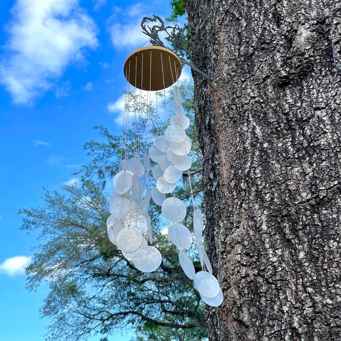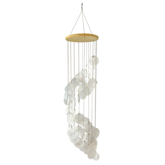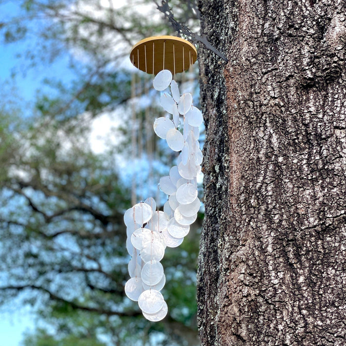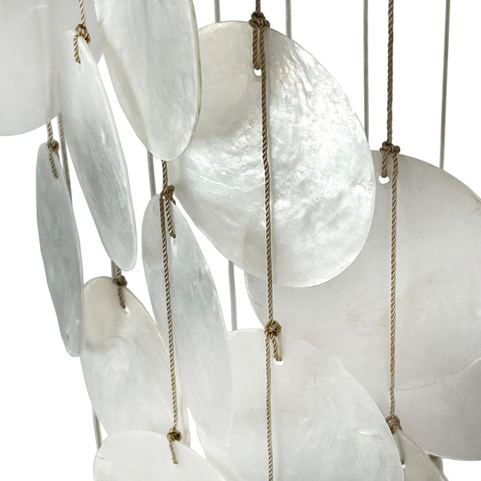 White Capiz Shell Wind Chime – Elegant 29-Inch Hanging Coastal Décor for Patio, Garden, Porch or Balcony, Soothing Melodic Sound, Natural Shells, 5.75" Diameter, Lightweight, Relaxing Outdoor Accent
