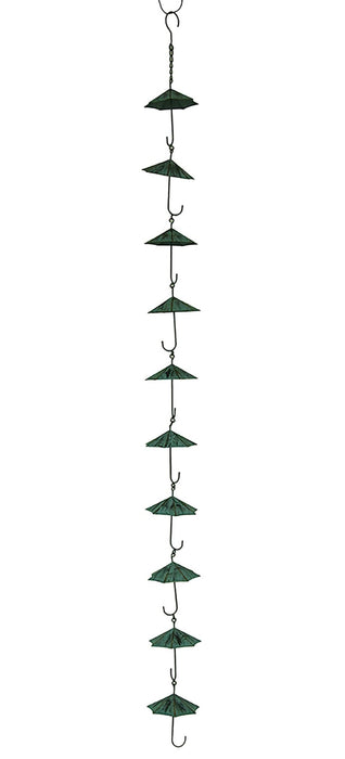 - 10 Verdigris Finish Umbrella Shaped Cups Visibly Guide Rain Water Down the Chain For Collection
