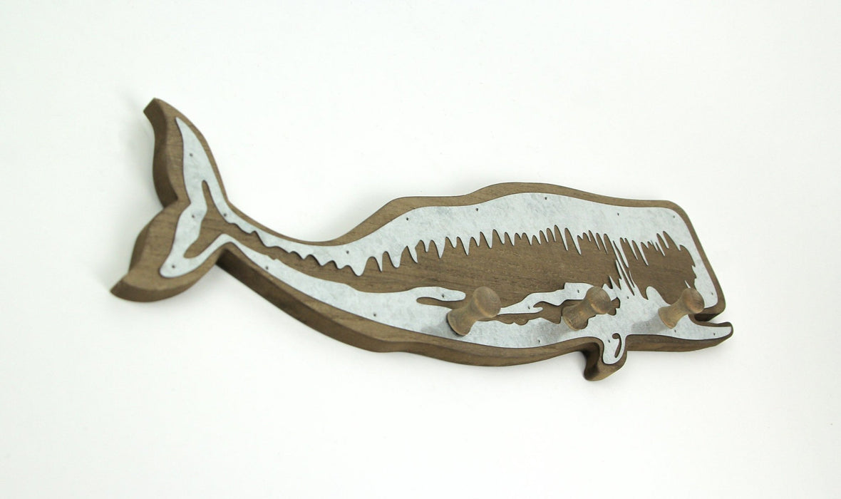 Rustic Weathered Brown Wood Whale Wall Hook Rack with Metal Accents - Decorative Ocean Décor Art Sculpture - 21 Inches Long - Nautical Statement Piece